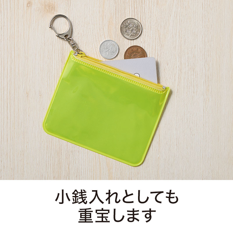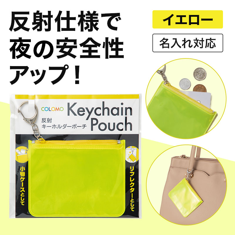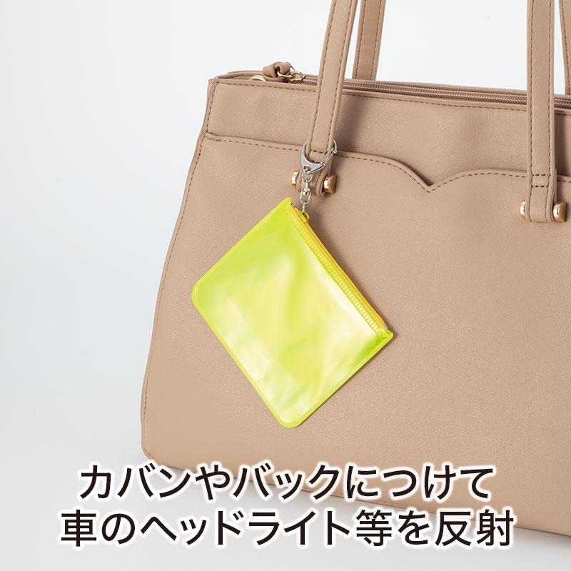 反射仕様のミニポーチ。キーホルダーのようにバッグに取り付ければ夜間の安全対策にも