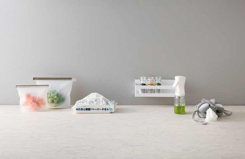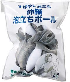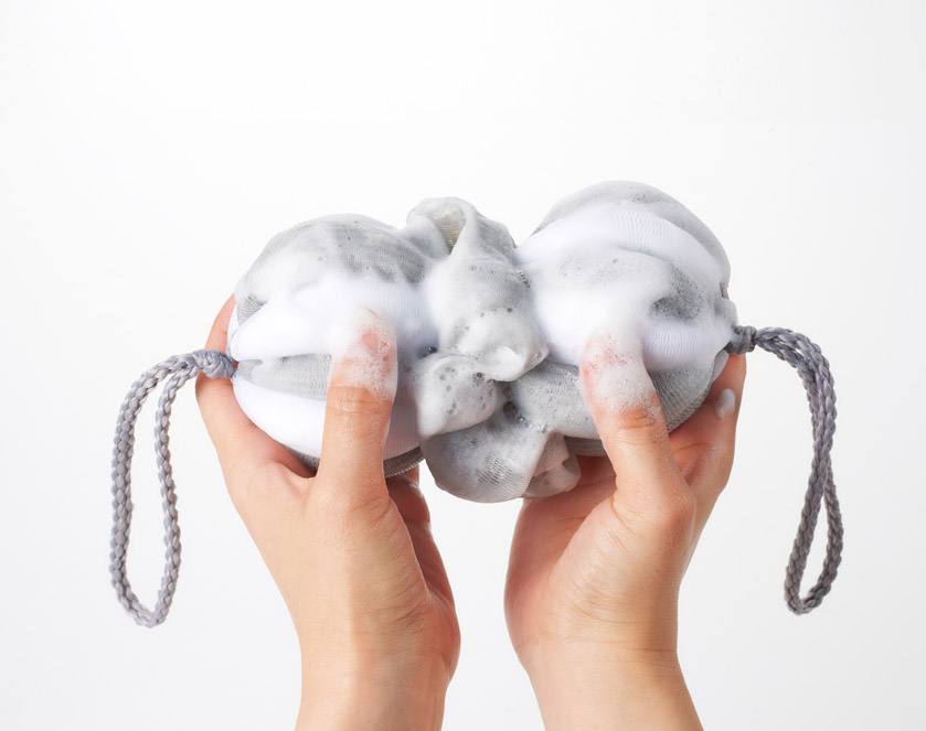 SPソースとニトリパブリックの共同開発商品。 細かい網目ですばやく泡が立ち、 伸縮するので背中もらくらく洗える便利グッズ。