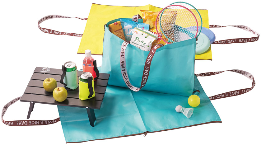 中身を取り出すとレジャーシートに変身する、