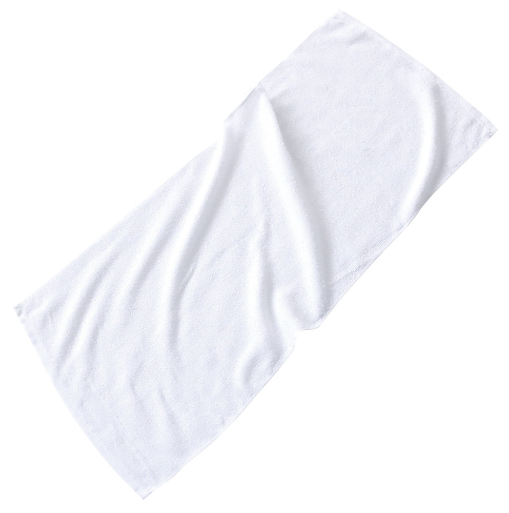 ログインご挨拶にぴったりなお手頃価格の白タオル。名刺やカードを入れられるポケット付きです。
