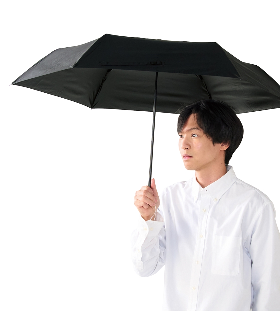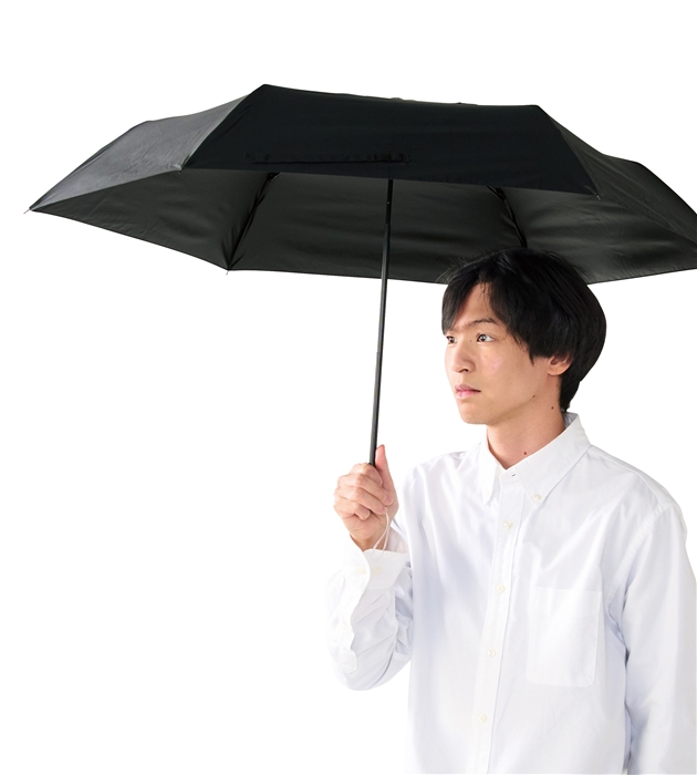 黒の内生地が、刺すような太陽の光と熱をやわらげます。ここ数年で男性にも日傘の使用が浸透してきました。日常生活にすら影響を及ぼすような近年の日本の猛暑を賢く乗り切りましょう。こちらは常備しておきたい折りたたみ式。
