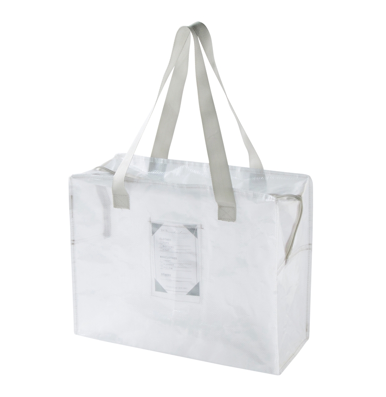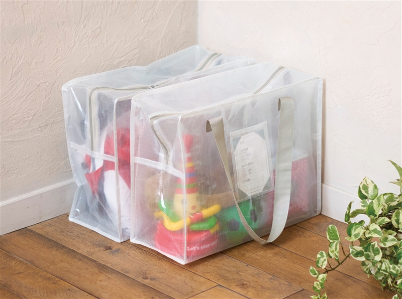 市場でも大人気!オフシーズンの衣類や寝具、冠婚葬祭アイテム一式などをカテゴリーごとにまとめておける大容量のボックスバッグ。クローゼットの棚の上やベッド下収納にもぴったりです。半透明なので「これ、何が入ってるんだっけ?」がなくなります!中身をメモできる付属のメモカードはオリジナル可能(別途料金/フォーマットをご用意しております)