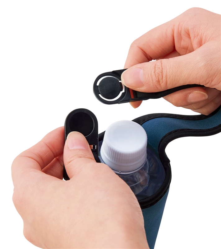 バックル付きのハンドルでバッグに取り付けられるシンプルなペットボトルカバー