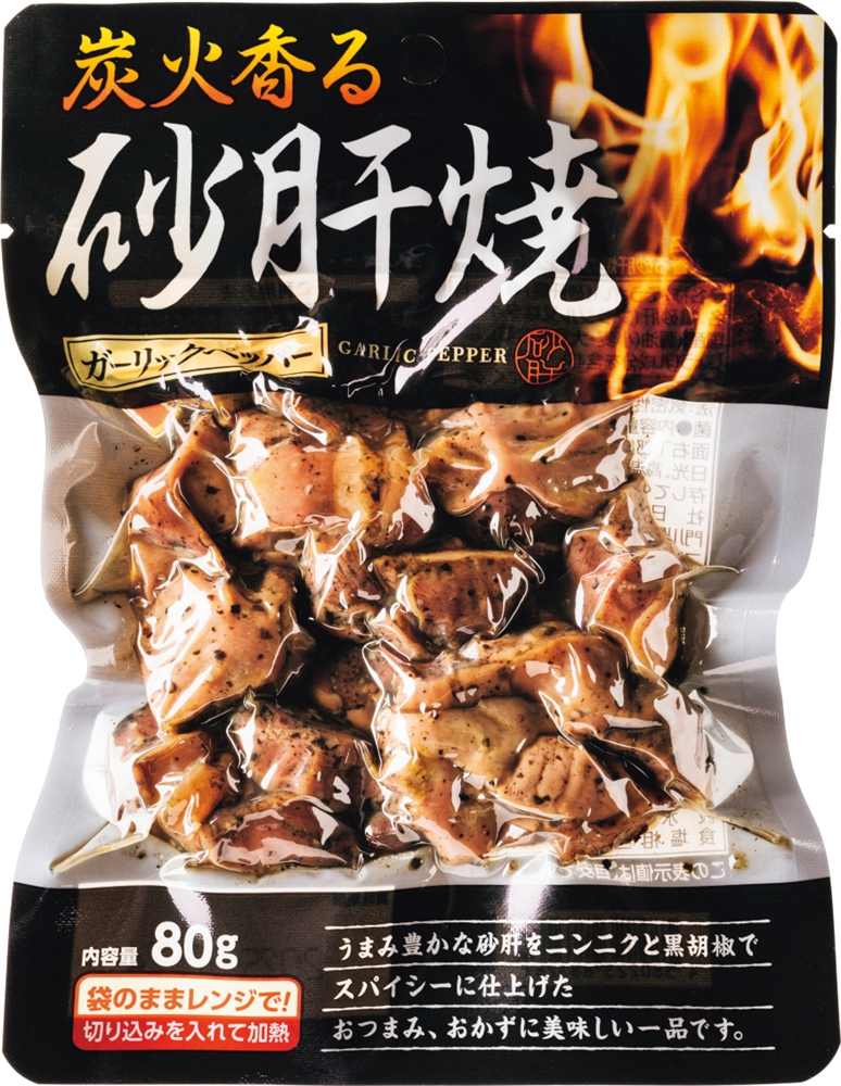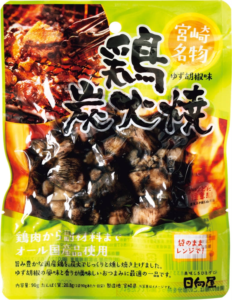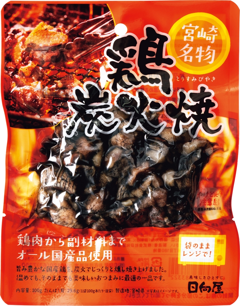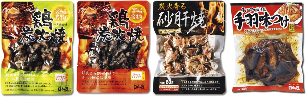湯煎・レンジで簡単調理。「鶏炭火焼」は炭火で芳ばしく燻し焼き上げた一品。調味料(アミノ酸)・保存料・着色料不使用。「鶏炭火焼ゆず胡椒味」は炭火で燻し焼き上げ、ゆず胡椒風味に。「おつまみ放浪記手羽味つけ」は国産鶏手羽を炙り焼き、自家製しょうゆダレでじっくり柔らかく。「炭火香る砂肝焼ガーリックペッパー」は鶏の砂肝を直火で焼き上げ炭火で燻し、黒胡椒とにんにくなどで味付けをしました。