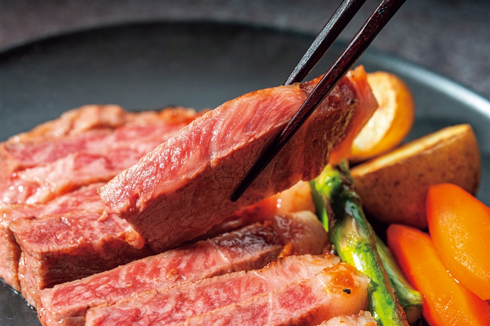 高級部位であるロースはサシがしっかり入り、見た目や味だけでなく歯ごたえまでもが完璧な牛肉です。