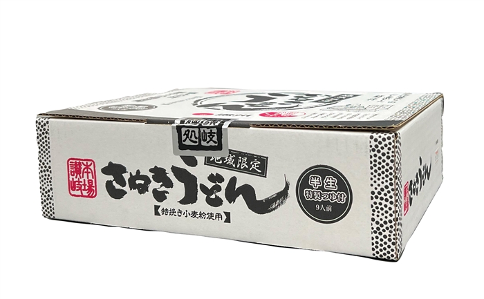 たっぷり9人前を小ロットから出荷対応!ずっしりボリューム満点の讃岐うどんで家族みんなが笑顔になれます。つゆ付きなのですぐ召し上がれる点も高ポイント。お持ち帰り用ポリ袋も付属します。