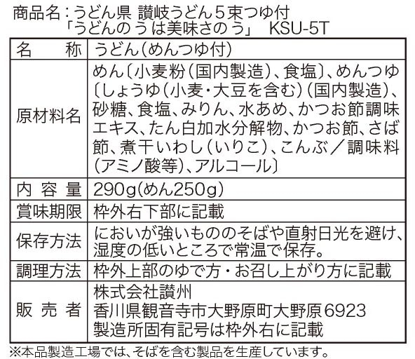| 備考 | <セット内容> 讃岐うどん50g×5束 万能タイプめんつゆ20ml×2 |