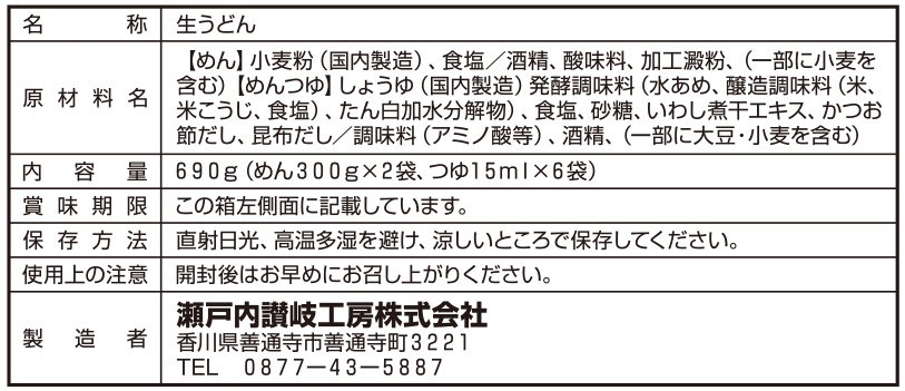 | 備考 | <セット内容> 生うどん300g×2袋 つゆ15ml×6袋 |