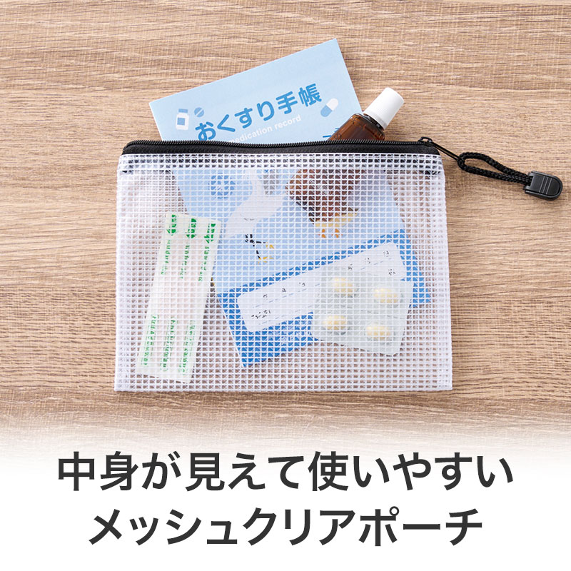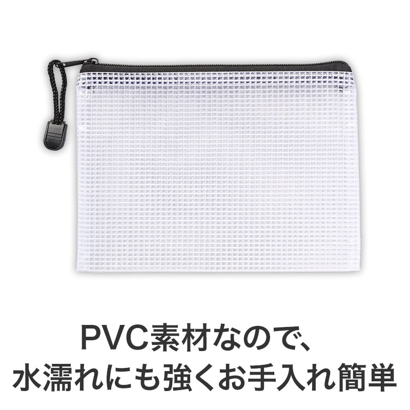 両面メッシュタイプのクリアポーチ。お知らせなどをいれてノベルティとして、備品として、資材と・・・使い方いろいろ