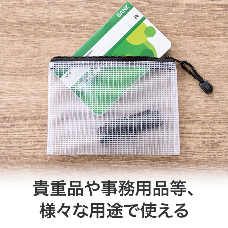 ログイン両面メッシュタイプのクリアポーチ。お知らせなどをいれてノベルティとして、備品として、資材と・・・使い方いろいろ