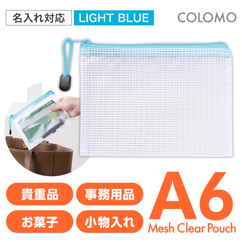 カラモ 両面メッシュクリアポーチ A6 ライトブルー
