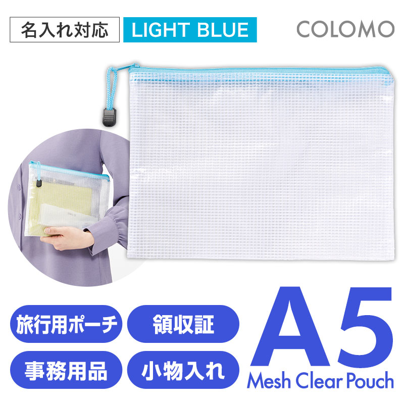 カラモ 両面メッシュクリアポーチ A5 ライトブルー