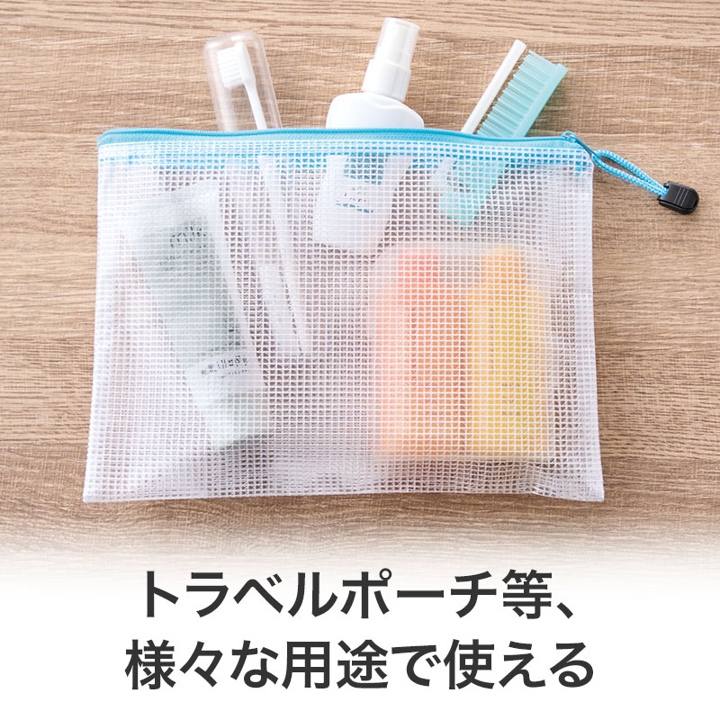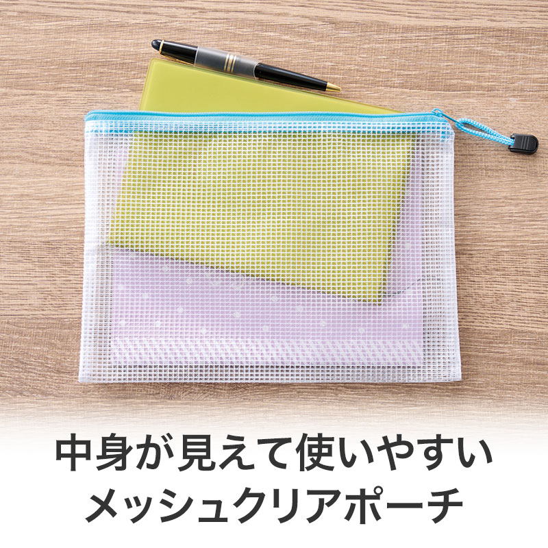 両面メッシュタイプのクリアポーチ。お知らせなどをいれてノベルティとして、備品として、資材と・・・使い方いろいろ