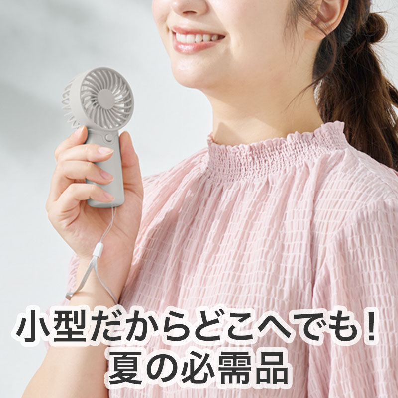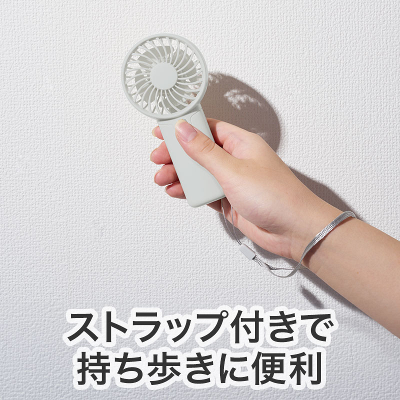 カラモ ストラップ付きハンディファン ライトグレー