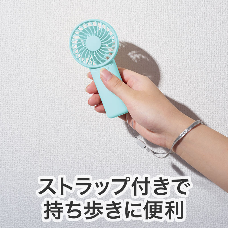カラモ ストラップ付きハンディファン ミントブルー