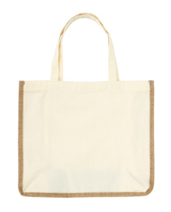 ナチュラルテイスト感たっぷりで持ち歩きラクラクの肩掛けトート。軽やかな10オンスコットンに、サイドと底のマチをジュート素材で仕上げたスクエア型で、見た目以上の収納力を発揮します。シンプルデザインだからこそロゴ印刷もよく映え、気取らないおしゃれが叶う一品です。