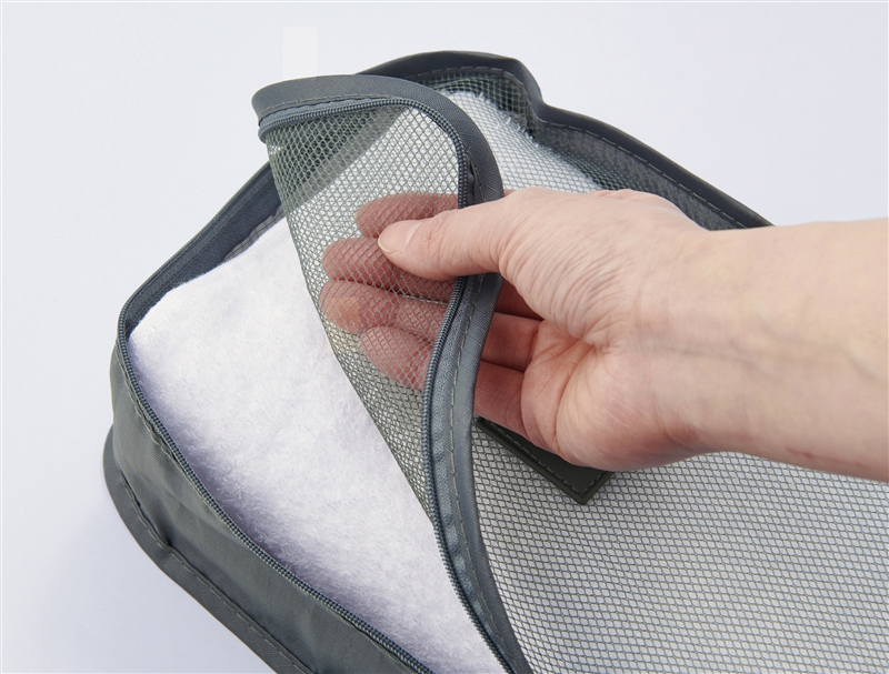 中身が見えるメッシュバッグ2個と、3サイズのフラットポーチが揃った合計5点セット。ポーチはスーツケースのポケットやすき間にも収まりやすく、旅行や出張、ジム通いまで幅広く活躍。タグがアクセントになっていて、実用性とオシャレさを兼ね備えています。荷物もすっきり整うスマートな収納アイテムです。