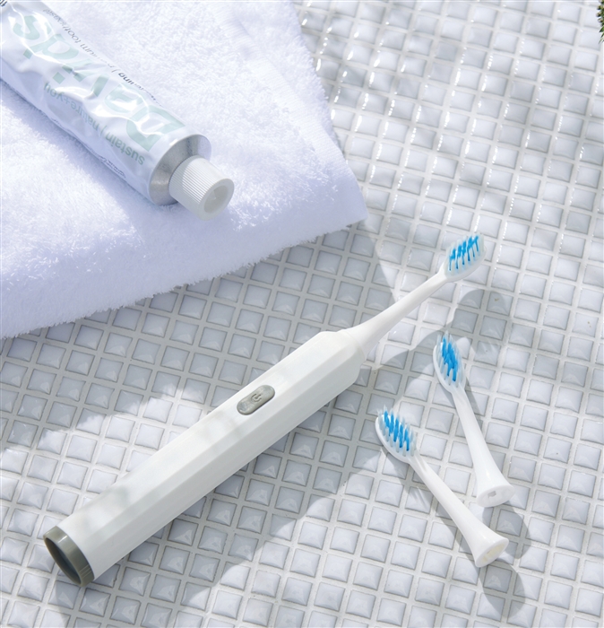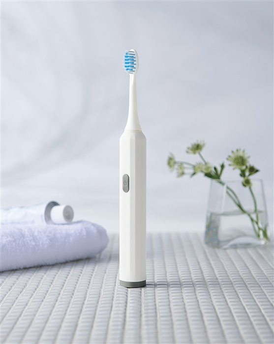 スイッチひとつのシンプル設計で、気軽に使えるエントリーモデル。替えブラシも2本付属しており、毎日のマウスケアをしっかり続けられます。手みがきでは届きにくい歯と歯の間に、細かな振動がしっかりアプローチ。名入れも可能で、日常的に目に触れるアイテムとしてノベルティやキャンペーン景品にも好適。