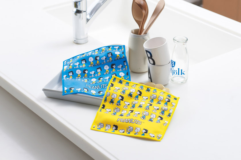 スヌーピーたちがプリントされたキッチンクロス。