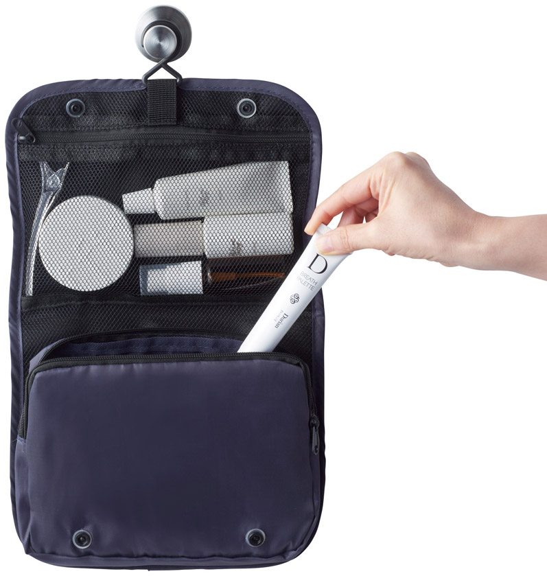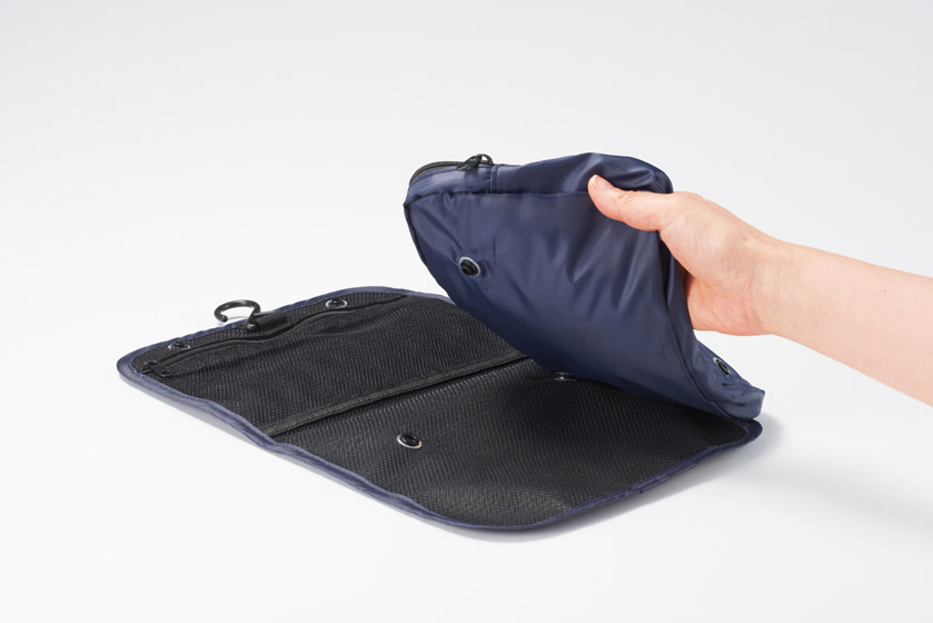 どこでも広げて吊るして、便利なトラベルポーチ。