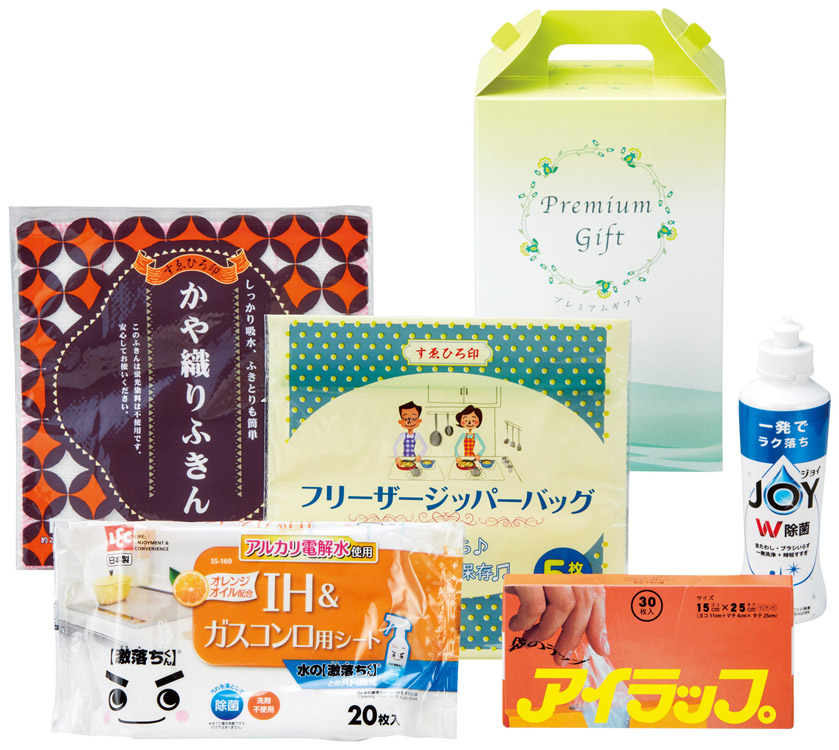 注意事項 | セット内容/フリーザーバッグ5枚入・アイラップミニ30枚入・食器用洗剤・かや織りふきん・お掃除シート20枚入 |