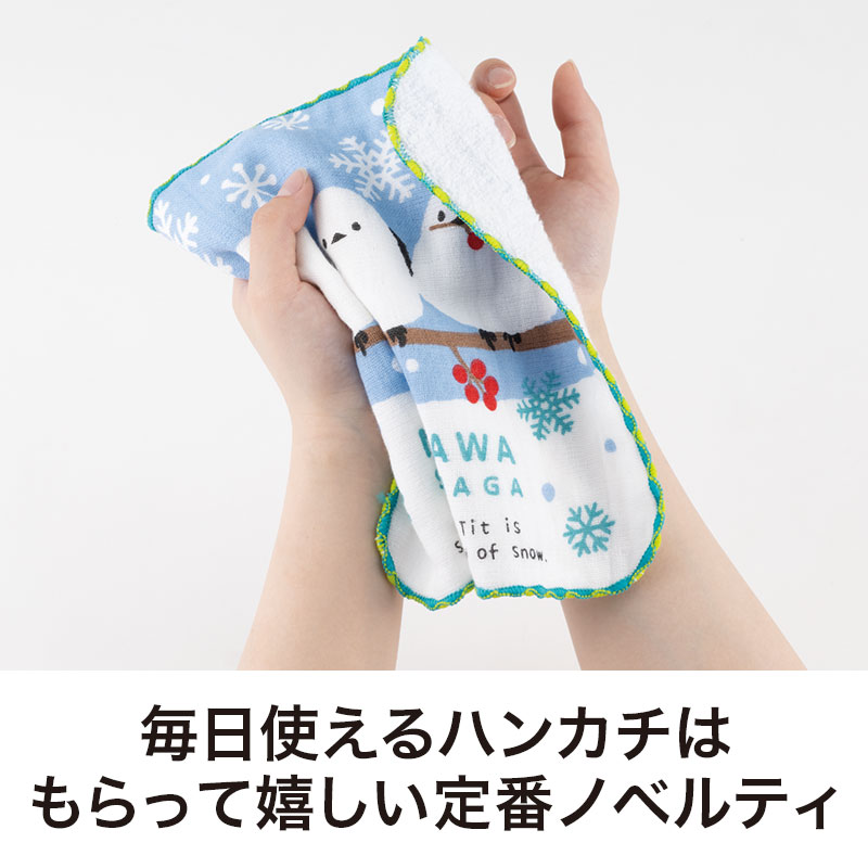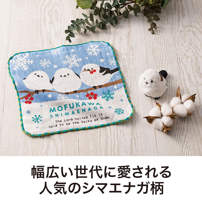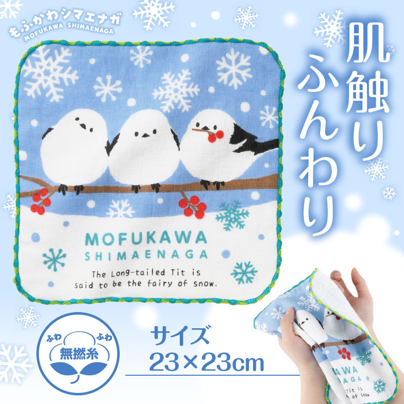 もふかわシマエナガ 無撚糸ガーゼハンカチ