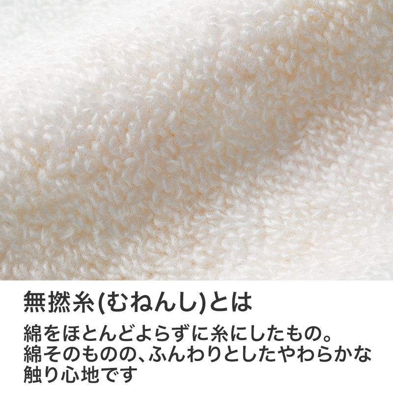 ログイン表面は肌触りの良いガーゼ、裏面はやわらかな無撚糸を使用。やさしい雰囲気の仕上がりは、贈り主からの想いが伝わります