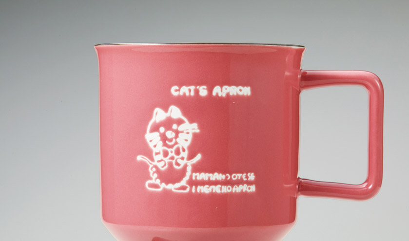 エンボス表現のイラストがおしゃれな陶製マグ。