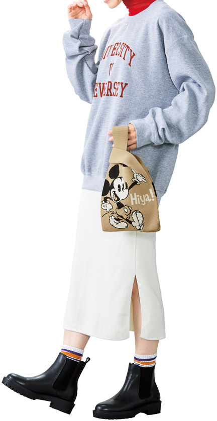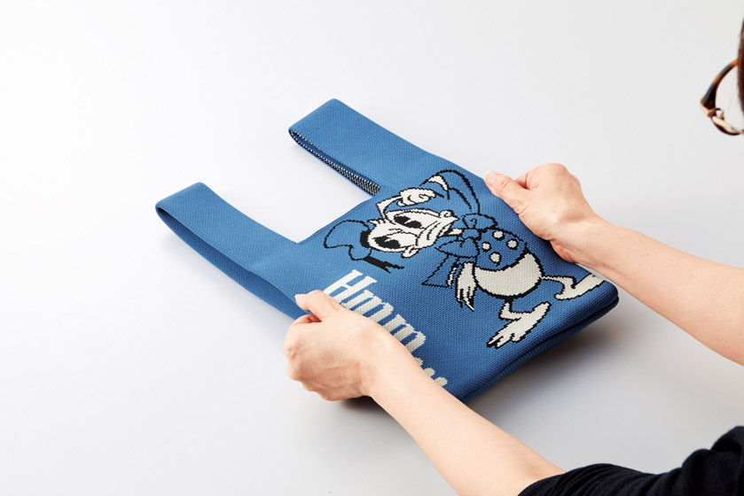 伸縮性が高く収納力も抜群、両面柄もポイント。