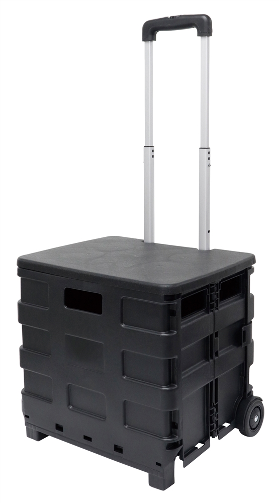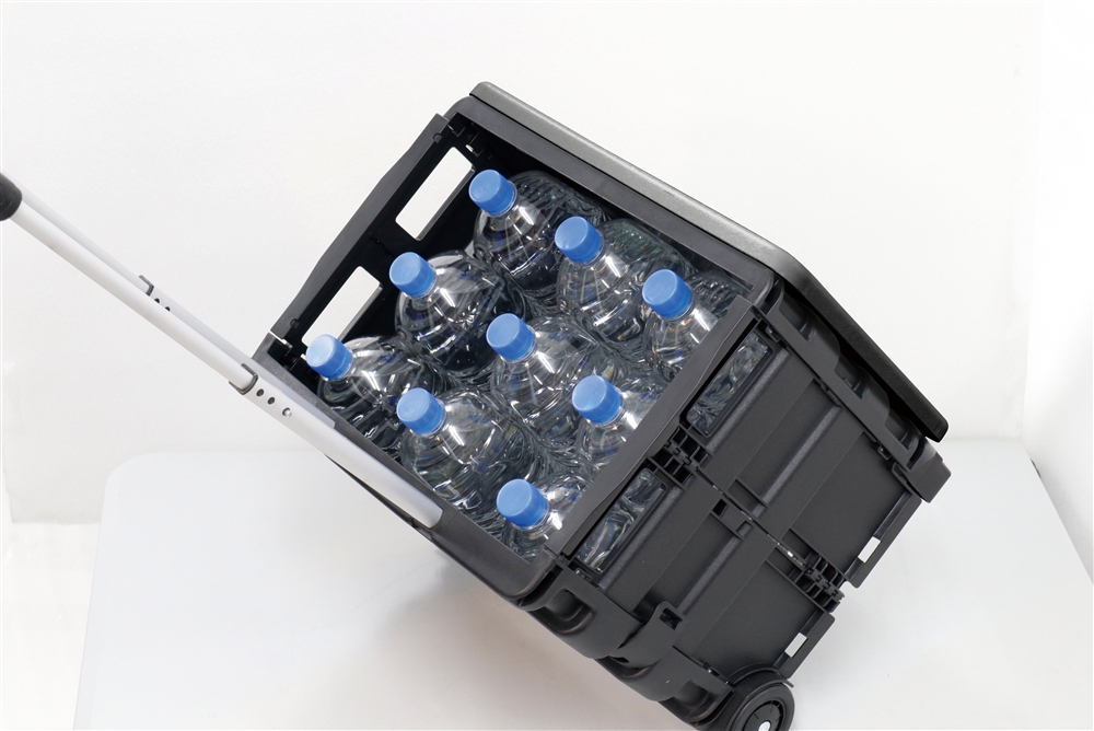 使わないときはコンパクトに折り畳んで収納。 玄関や車に置いていてもスペースをとりません。 取っ手の延長が可能なので、高さのあるものでも大丈夫。 キャスター付きで詰め込んでも移動がラクラク!
