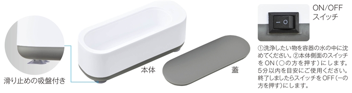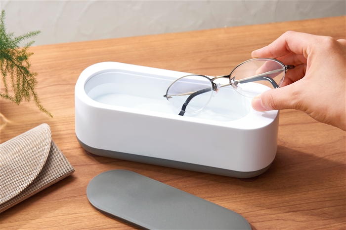 【旧来ご提供単価299円】 眼鏡やアクセサリー、メイク道具などの洗浄に便利なスマートな洗浄機です。底面にはすべり止めの吸盤付き。