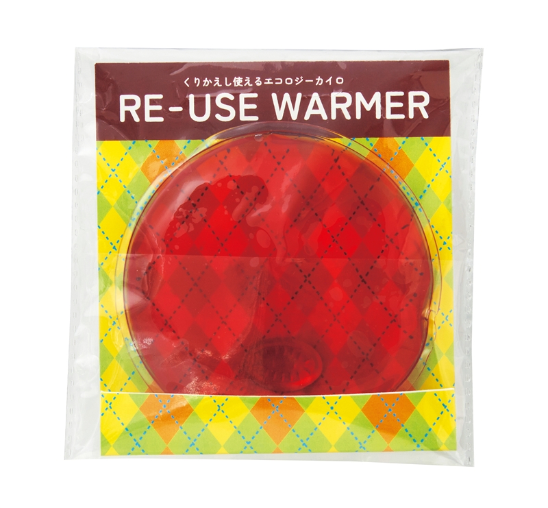 金属ボタンをパチっとすればたちまちあたたかくなり、使用後は煮沸でくり返し使えるエコなカイロ。名刺ポケットがついた個包装袋が便利。名刺やショップカード、クーポン券なども挿せて販促品にも最適です。冬のご挨拶品としてもおすすめです。