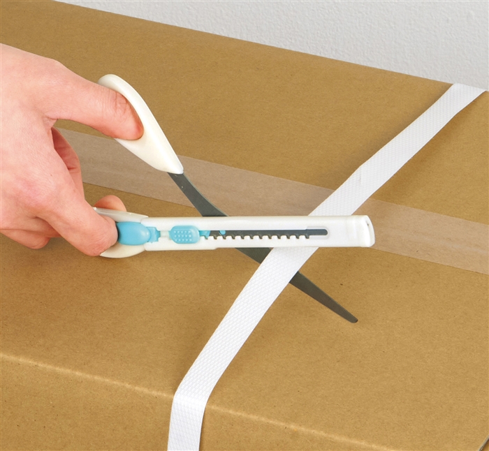 カッターとハサミが一体化!荷物の開梱から封書の開封まで、これ1本でこなせる便利なツールです。