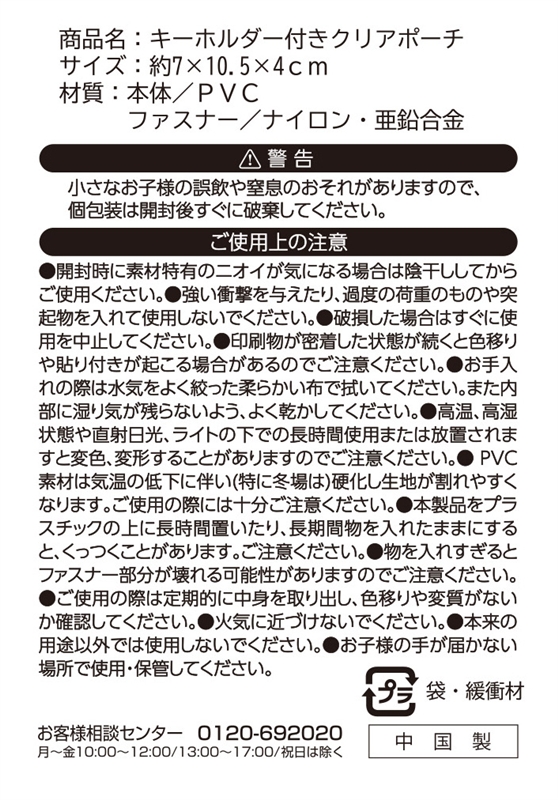 キーホルダー付きクリアポーチ