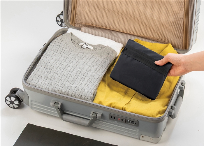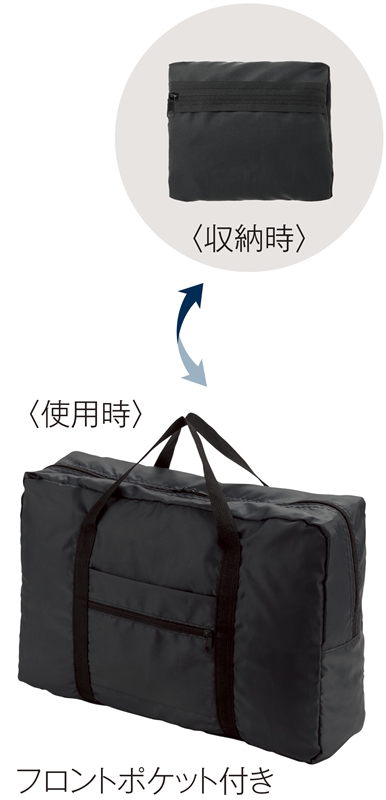 広めのマチで収納力抜群のボックス型デザインは、荷物が増える旅行や帰省時に大活躍。使わない時はコンパクトに折りたためるため持ち運びも簡単!キャリーバッグのハンドルに通せるベルト付きで移動中も安定し、オールブラックのシンプルなデザインは男女問わず使いやすい仕様。名入れ対応も可能です。