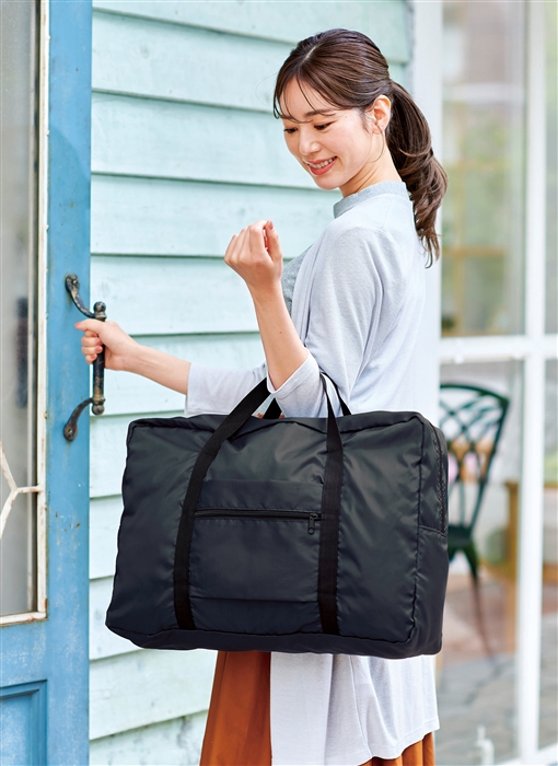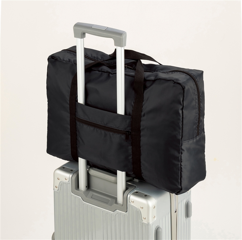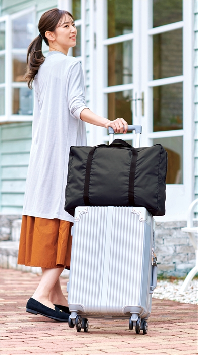 スーツケースに装着できる折りたたみ式ボストンバッグ。旅行や帰省、出張の頼れるサブバッグに。