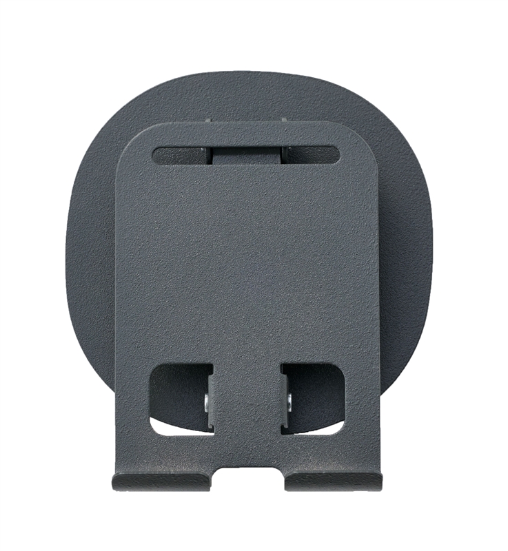 クールなブラックボディのスチール製スマホスタンド。充電しながら使えて、持ち運びにも便利な折りたたみ式