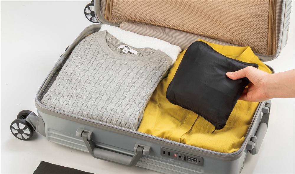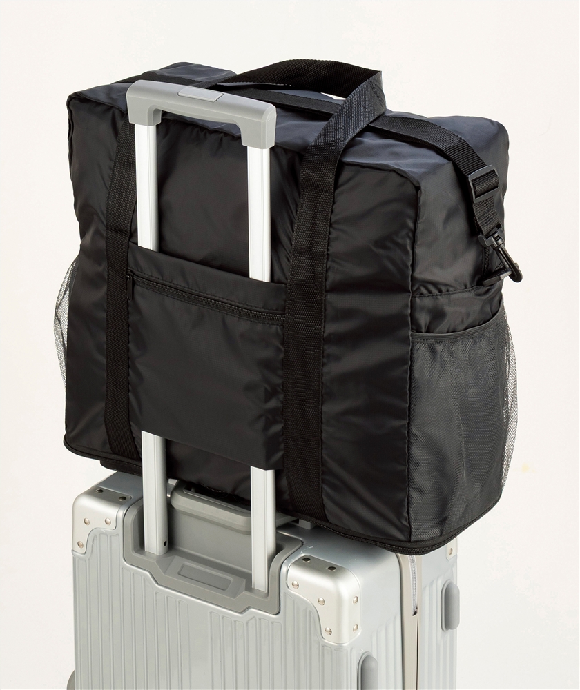 【旧来ご提供単価399円】 旅行や帰省、出張に!スーツケースのハンドルに装着できて容量も増やせる折りたたみ式のショルダーバッグ。