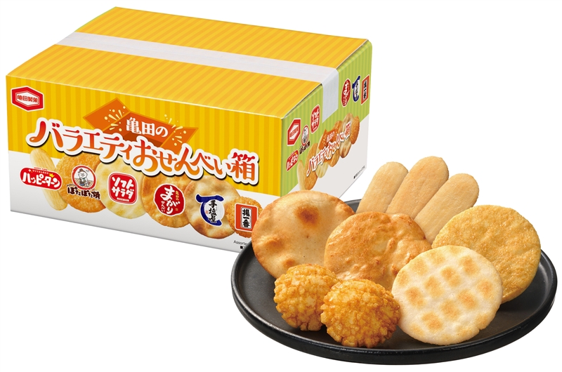 亀田製菓の売れ筋6種類のおせんべいがオリジナルダンボールにバラエティ豊かに詰まっています♪