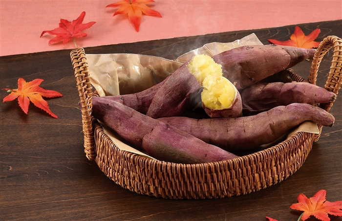 秋の味覚であるさつまいもですが、鹿児島県産の紅はるかを採用しております。全国でも人気のさつまいもです。形・色ともに美しく、焼き芋にした際の糖度が60度以上にもなるのが特徴です。天ぷらにもどうぞ!