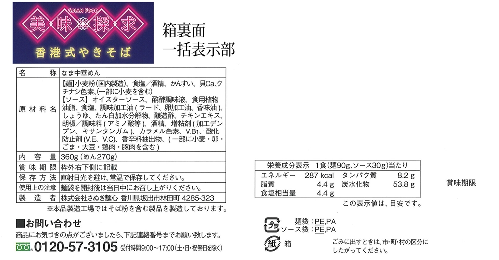 | 備考 | <セット内容> 麺90g×3 ソース30g×3 |