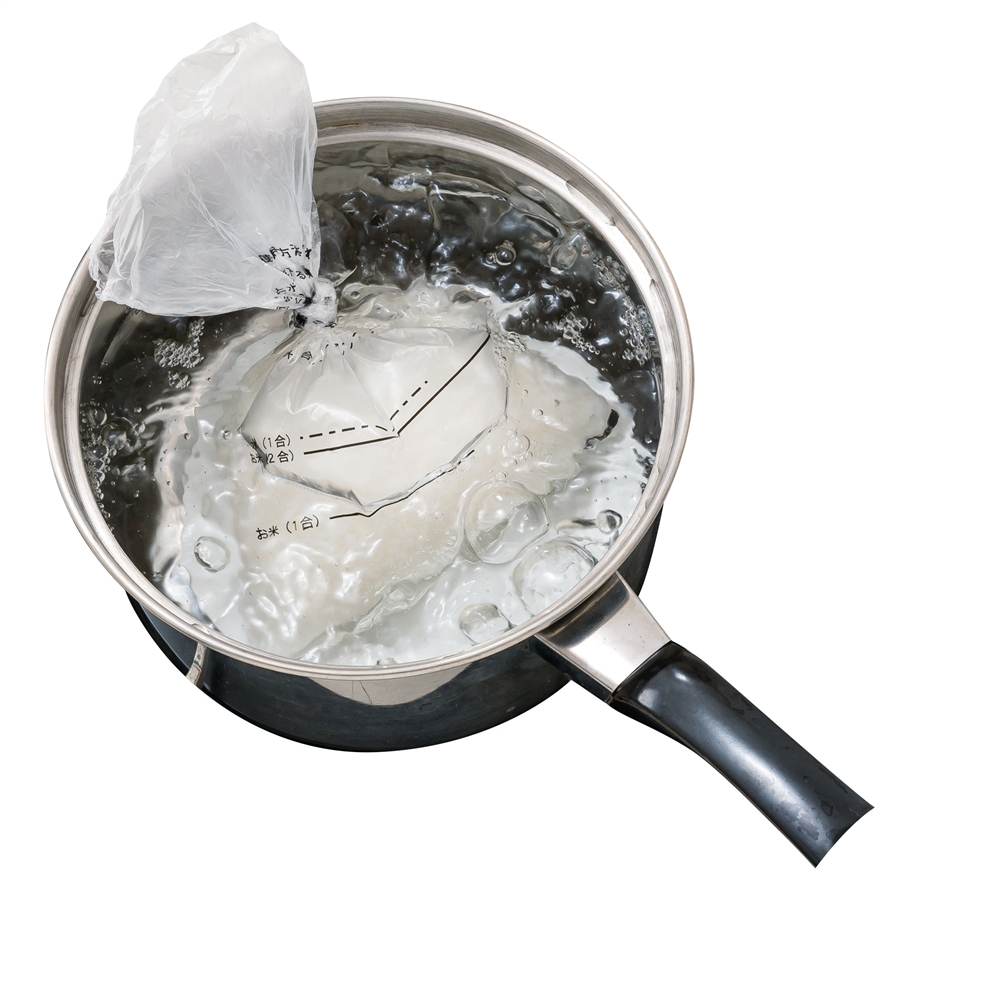 湯煎するだけでご飯が炊けます(2合まで)。アウトドアや災害用備蓄に使用できます。