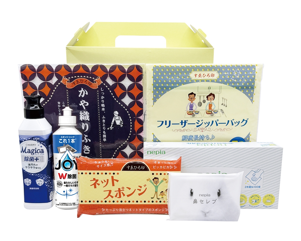 キッチン回りで役立つ日用品グッズをバラエティ豊富に取りそろえたギフトセットです。