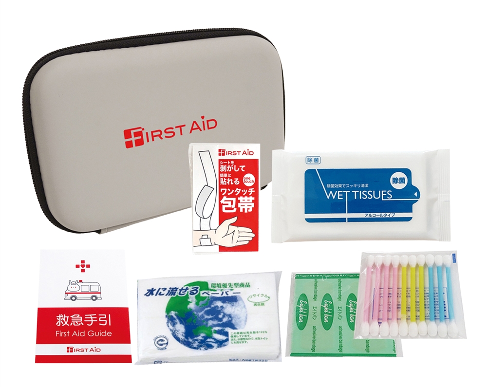 | 備考 | <キット内容> 【特賞】コンパクトファーストエイドキット7点セット・・・2本 【1等】コンパクトファーストエイドキット6点セット・・・3本 【2等】救急てぬぐい・・・5本 【3等】救急ジッパーポーチ3Pセット・・・40本 <付属品> 抽選くじ×50、抽選箱×1、くじ明細書×1、告知用A3ポスター×1 ※賞品の内容・仕様は画像と異なる場合があります。あらかじめご了承ください。 |