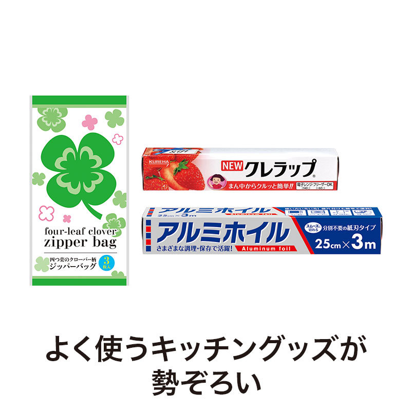 ■内容:NEWクレラップ22cm×10m・アルミホイル25cm×3m・ジッパーバッグ(3枚入) 各1
