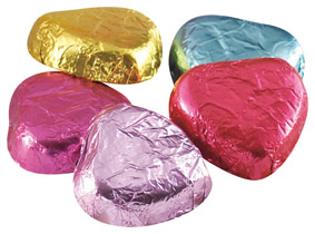 ハート形のカラフルな包み紙にくるまった