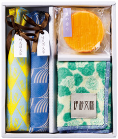 綿100%ハンカチタオルの和柄ギフト4点セット。