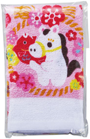 お正月を彩る晴れやかなデザインが 細かなところまでプリントされている お年賀タオルです。