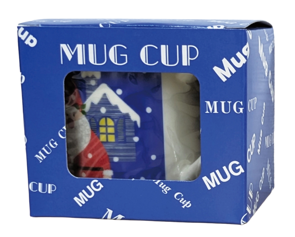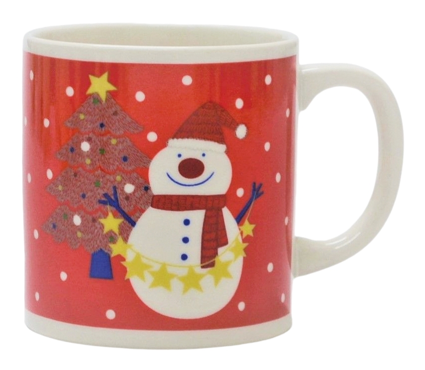 サンタクロースとスノーマンのデザインの日本製マグカップです。