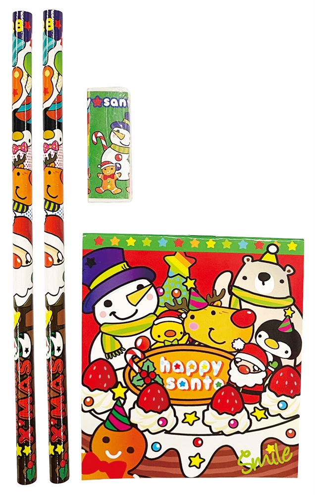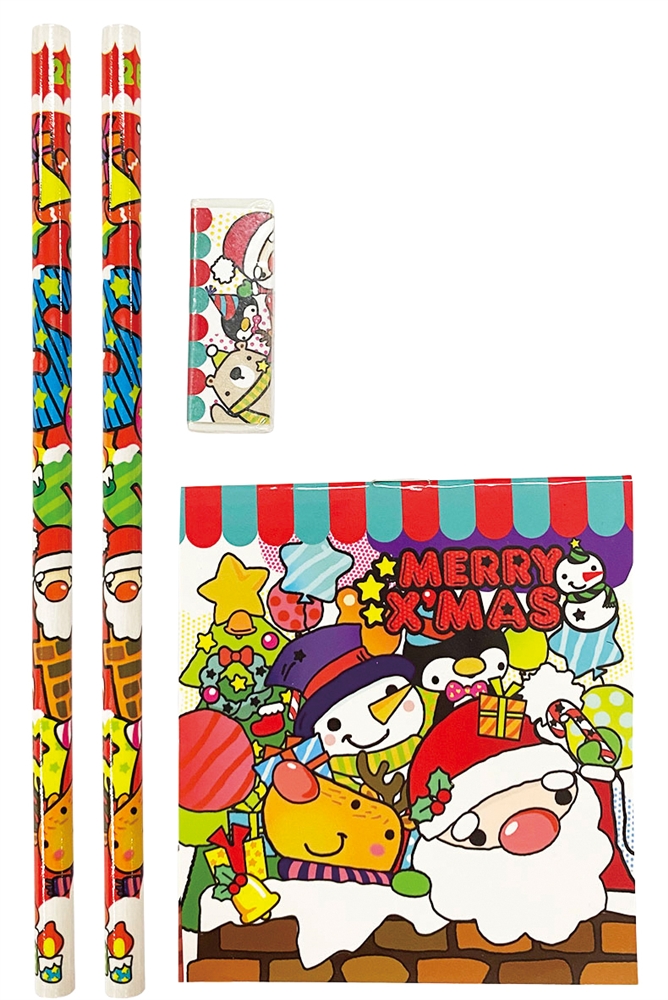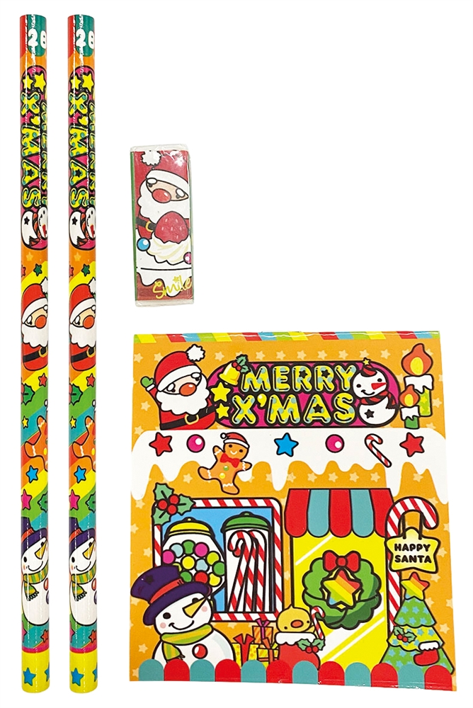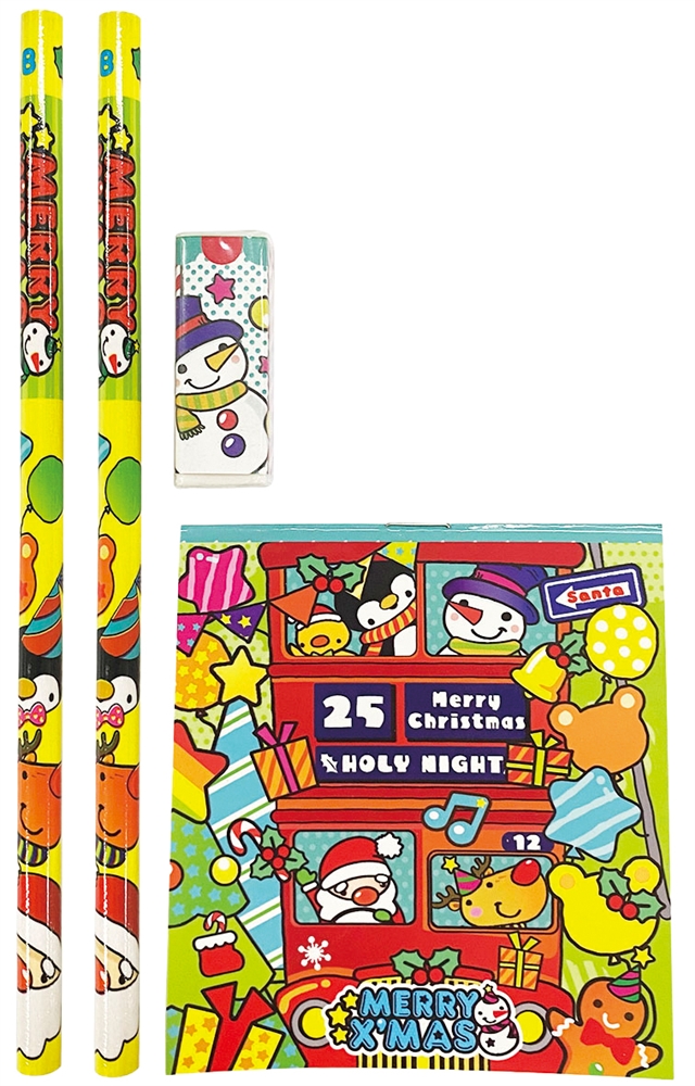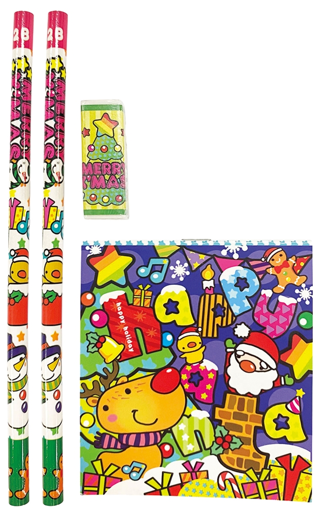 カラフルなクリスマスデザインのステーショナリーセットです。